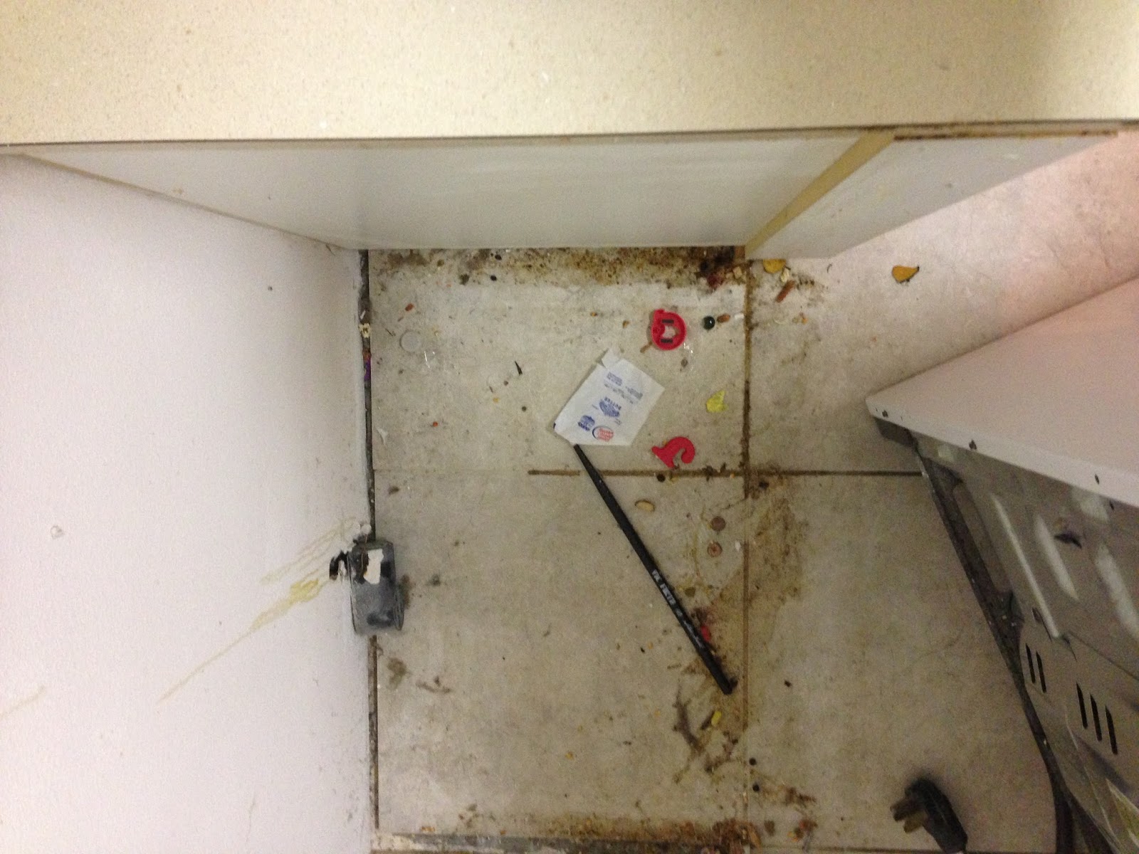 So, once we decided to get someone to paint the ceilings it gave us an opportunity to tackle the kitchen...we're getting a new kitchen, I didn't tell you?! Yep, we got some sweet hickory cabinets, on sale of course, from Home Depot and some new appliances that are on there way here. So we needed to pull the old ones down...ugh. It didn't take long, but gross! These people were nasty!!